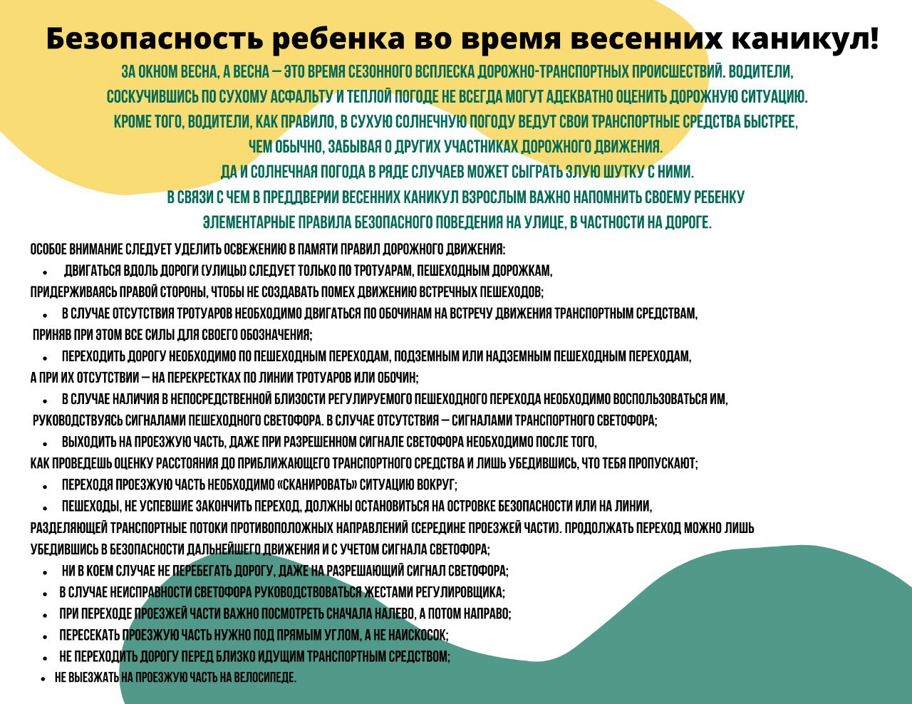План весенних каникул